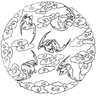 在一些盘碟、花瓶等瓷器中,常以蝙蝠及云纹为构图主题。其中,“云”寓意“绵延不断”,形似如意,象征着幸福如意、百福不断。