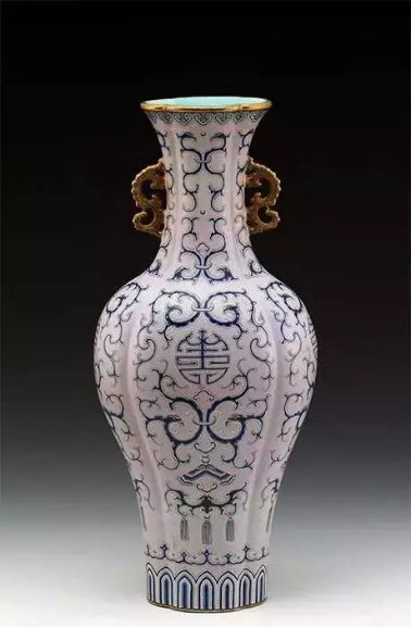 清乾隆景德镇窑粉彩福寿吉庆纹海棠式瓶