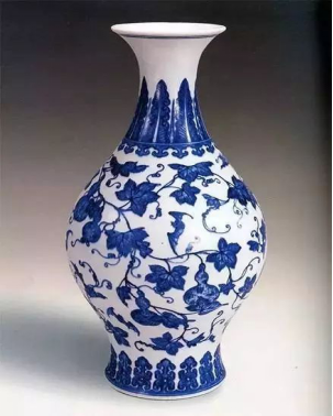 清雍正青花缠枝葫芦飞蝠纹橄榄瓶