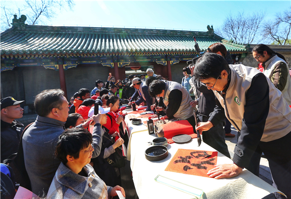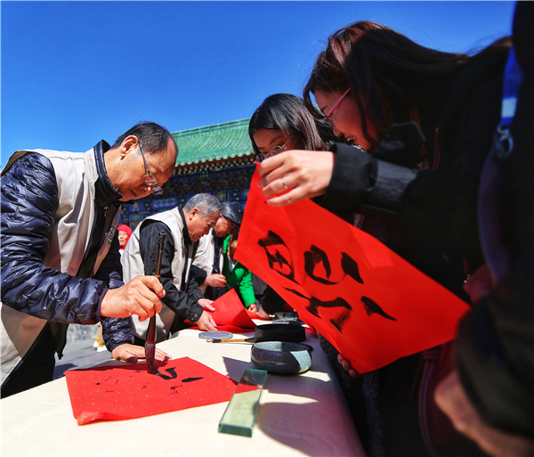 在精彩的古琴表演和太极拳表演中,祈福大典拉开序幕,之后以斋醮科仪的道教仪式,通过颂“福”、迎“福”、祈“福”、写“福”、送“福”等多个版块来展示中国传统“福”文化。多位书法家现场挥毫泼墨,书写福字,赠送给观众。