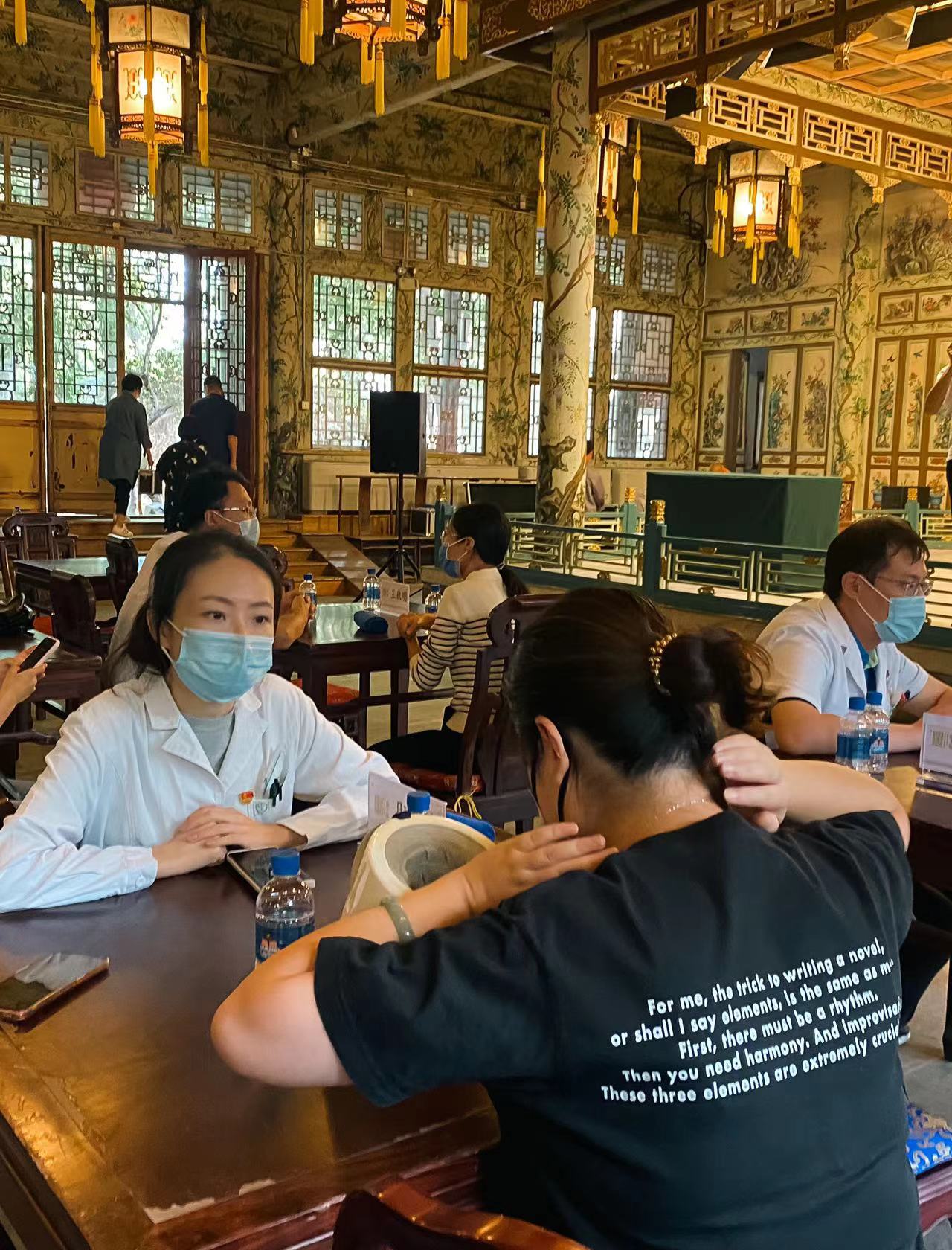 活动现场,北京中医医院的5位医疗专家为职工们开展了健康义诊和现场答疑。通过“望闻问切”,医生们为职工进行一一诊断,耐心细致地提供了具体指导或治疗建议。