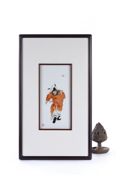 钟馗纳福系列产品之一,根据恭王府最后的府主人溥心畲原作的基础上进行创作的。钟馗被封为赐福镇宅圣君,在右上方还画有一只蝙蝠,寓意福从天降。