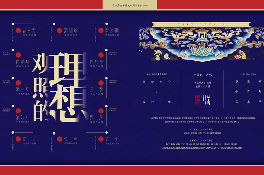 展览时间:9月4日至10月28日 展览地点:安善堂 “2018恭王府中青年艺术季”,是由恭王府博物馆展览活动部与中国美术家协会青少年美术展览与推广中心共同主办,特邀共青团北京市委员会作为合作伙伴,恭王府书画创作与研究中心执行,北京青少年艺术服务中心协办,国内一流学者担任学术顾问,从未来学角度关注和介入艺术发展的重要中青年艺术项目。 项目旨在为广大中青年艺术家提供国家级艺术成果展示平台、为各类观众群体提供高质量的中青年艺术公共文化产品、为学界提供当下代表性中青年艺术样本,促进成果传播、触发互动讨论,加强对当前中青年艺术发展的良性引导。项目共包括12场艺术家个展、11场艺术沙龙、1场工作坊活动,出版有《2018恭王府中青年艺术季艺术文献丛书(一、二辑)》。