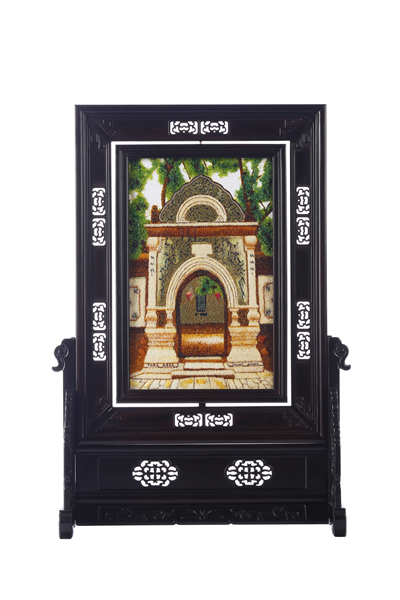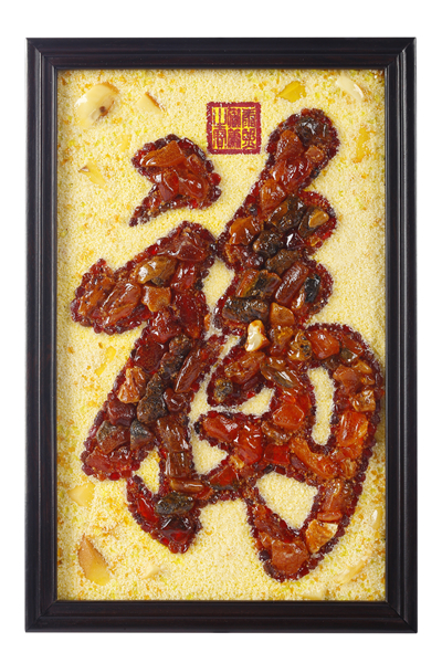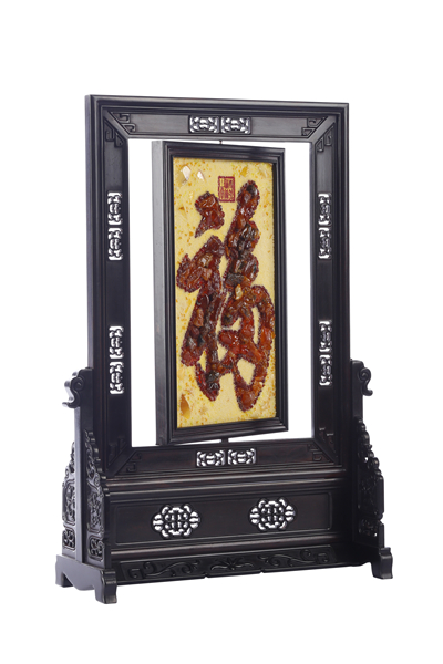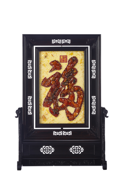 又名福来运转,正面以琥珀拼凑成福字,背面为恭王府“三绝”之一的西洋门。西洋门弥足珍贵,是恭王府万福园的必经之路,取开门纳福,招财进宝之意,整个边框采用紫光檀木寓意紫气东来。