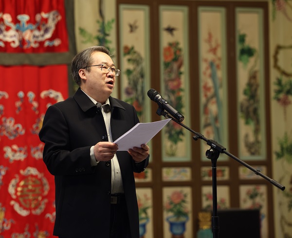 伴随着国家级非物质文化遗产项目(古琴艺术)代表性传承人吴钊先生的琴曲《梅花三弄》,雅集活动正式拉开了帷幕。恭王府博物馆馆长冯乃恩、南开大学文学院院长李锡龙、中华诗词学会会长周文彰先后致辞。