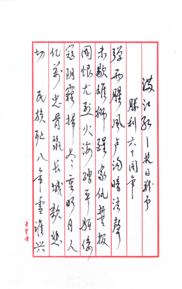 今年恰逢中国人民抗日战争胜利七十周年,故本次雅集分别以“乡愁”、“中国人民抗日战争胜利七十周年”为题,以诗词这一具有极大中华文化特色的特殊文化形式记载一个时代的历史,寄托一代雅士的情思,旨在把雅集活动与诗词文化这一中华传统之精粹更好地继承、展示和传播,从而对传承与振兴中华传统文化产生重要的作用和意义。