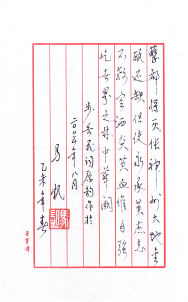 乙未春至,海棠花开,由文化部恭王府管理中心主办的第五届“海棠雅集”于4月13日上午成功举办。中央政治局委员、国务院副总理马凯同志特为本次雅集发来贺信,马凯副总理首先祝贺了第五届海棠雅集的举行。但由于公务在身,未能与会,甚为遗憾。马凯副总理特意围绕雅集主题送上旧作两首,聊以助兴,原文如下: