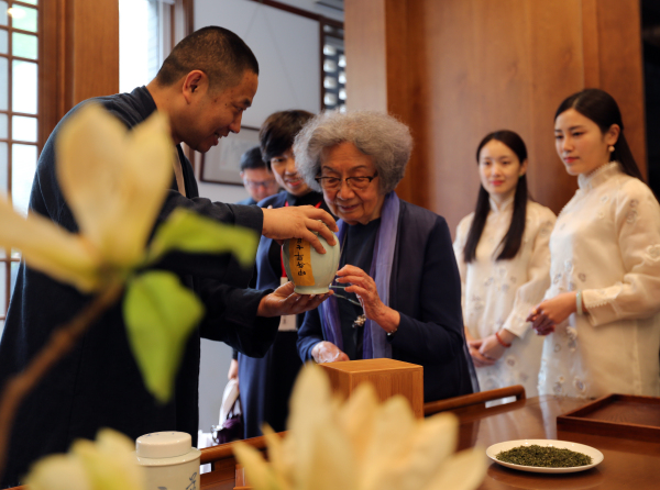 中国香文化研究中心孙亮展示古法烘焙的“莲花茶”