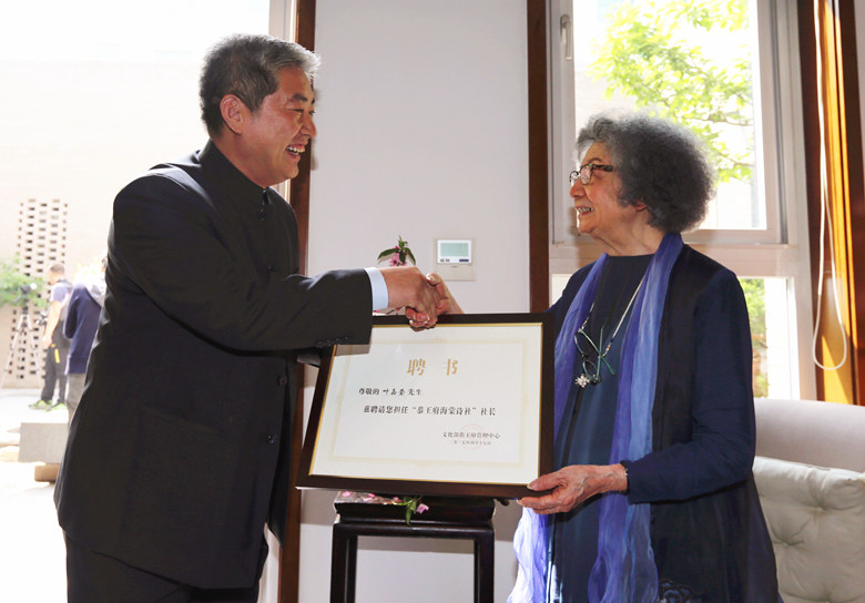 孙旭光主任向叶嘉莹先生颁发“恭王府海棠诗社”社长的聘书