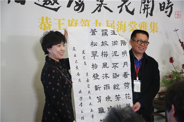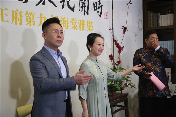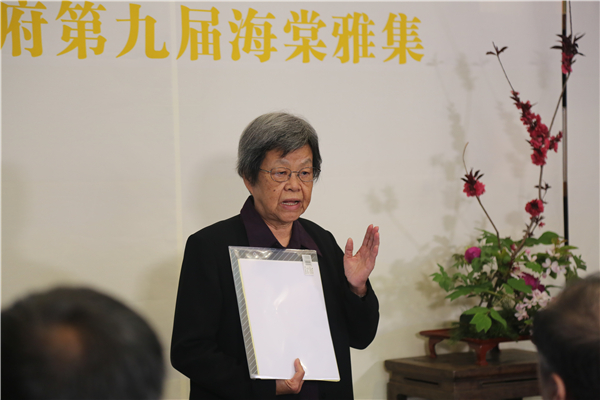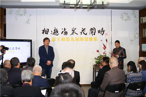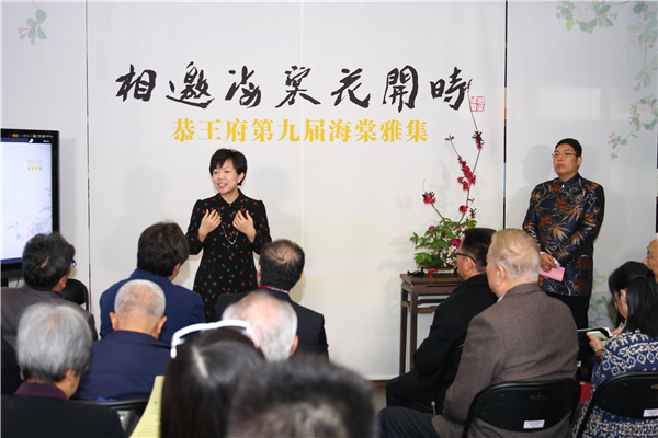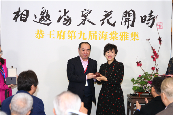 今年欣逢叶嘉莹先生九五华诞暨归国执教四十周年,边伟副馆长和李文朝先生分别代表恭王府博物馆和个人赠送了礼物。叶嘉莹先生因身体不适未能出席雅集活动,特委托其助手、南开大学文学院副教授张静女士向雅集各位嘉宾转达了问候。作为本届海棠雅集为叶嘉莹先生九五华诞的献礼,著名昆曲作曲家王大元为叶嘉莹先生的名篇《水云谣》重新谱曲,雅集现场由著名京昆演员周好璐、马力进行了精彩演绎,古典诗词与昆曲唱段相得益彰,别有一番韵味。
