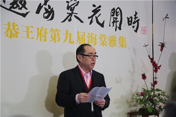 雅集活动在吴钊先生的琴曲中拉开了帷幕,空灵的琴韵将众人带入到传统文化高远意境当中,为雅集活动增色添彩。边伟副馆长在致辞中回顾了恭王府海棠雅集过去九年的历程;李文朝先生指出海棠雅集具有时代性、高雅性、传统性、开放性的特点,提出应坚持海棠雅集的高雅性、提倡走向大众,增加多样性的要求;冯大建副院长向在场嘉宾介绍了南开大学已经启动的“迦陵杯·诗教中国”诗词讲解大赛等活动。随后,边伟副馆长向李文朝先生颁发了“恭王府海棠诗社执行社长”聘书。