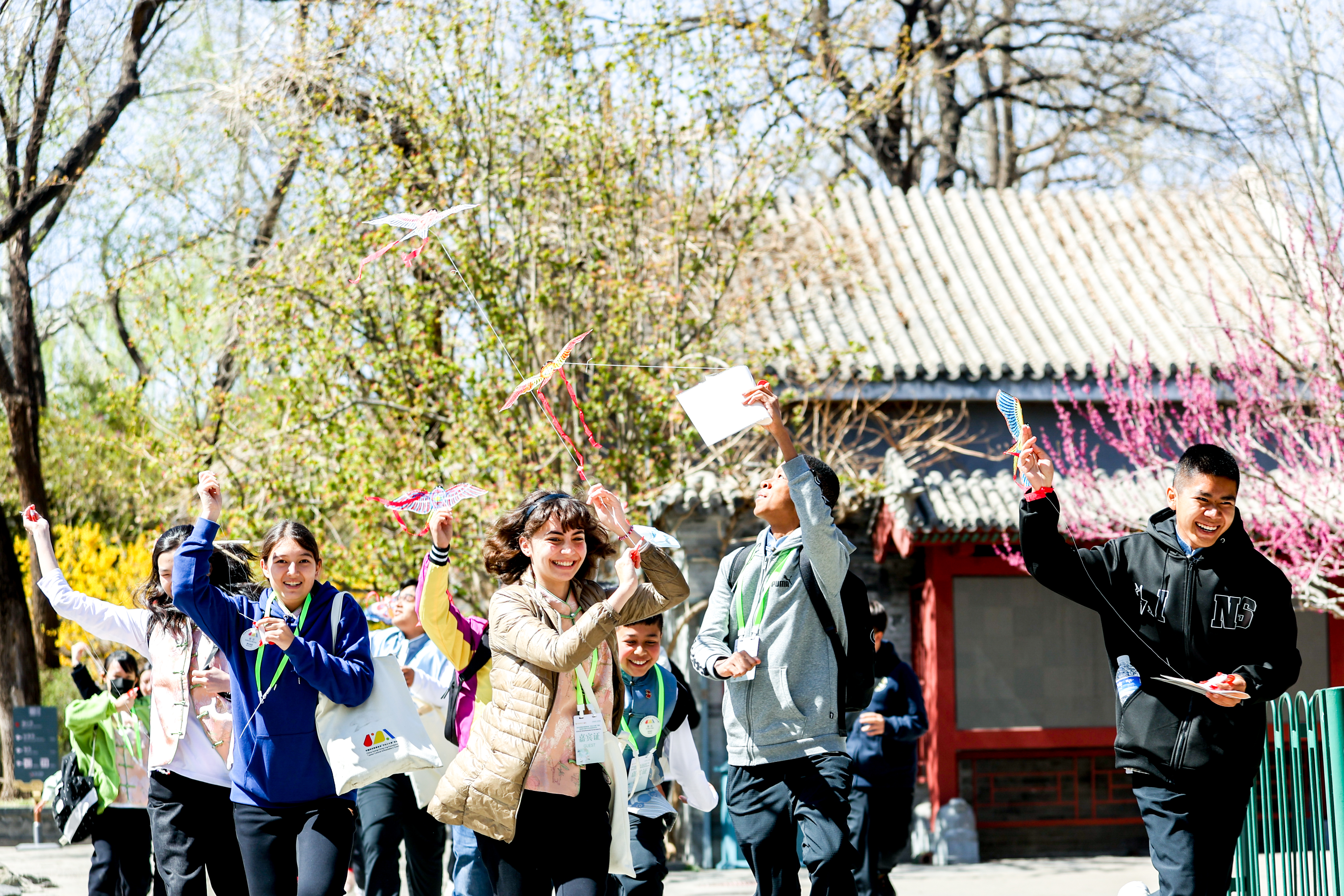 恭王府博物馆举办的中华文化研习交流活动中,年轻的学员们放飞亲手制作的风筝,感受传统文化中的精雅生活理念。恭王府博物馆供图