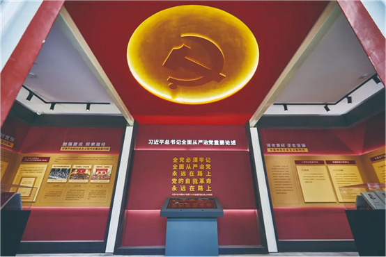 在第三展厅的居中位置,筹展工作组增设了电子读书设备,展示习近平总书记关于全面从严治党的重要论述,将“全党必须牢记,全面从严治党永远在路上,党的自我革命永远在路上”打造成金句墙。