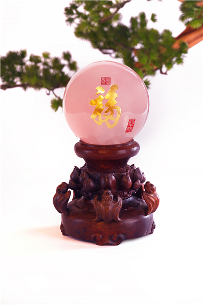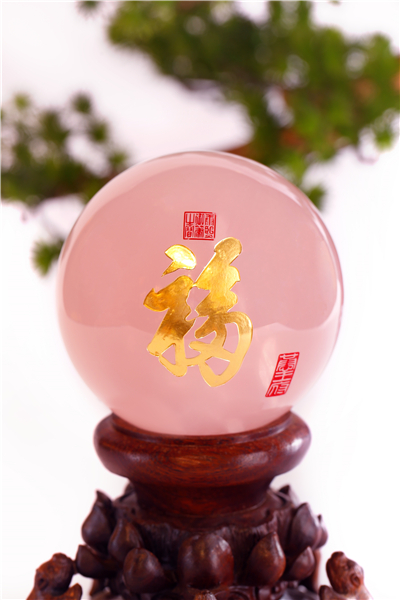 选用巴西水晶,上刻有镀金福字,寓意有求必应。