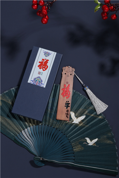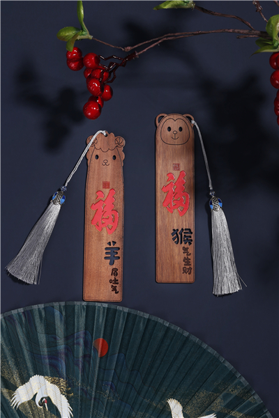 酸枝木材质,一面为福字,一面为生肖,方便实用。