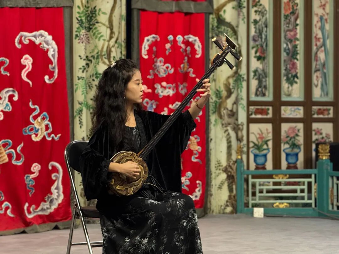 展演环节将活动推向高潮。来自中国艺术研究院曲艺研究所的刘禹、中央音乐学院的高玺同、天津音乐学院的高艺真等中青年演奏家,依次演绎了岔曲《四时闺怨·秋》、弦索套曲《松青夜游》《月儿高》《海青》(节选)等。特别是由刘禹、郭炎卓、金睿、王雁桢、孙豪五位艺术家共同演绎的弦索古曲《将军令》(节选),以恢弘的音响效果再现了王府音乐的典雅气韵,令在场观众仿佛穿越时空,感受到清代王府历史文化的独特魅力。