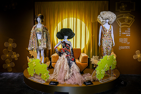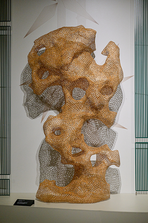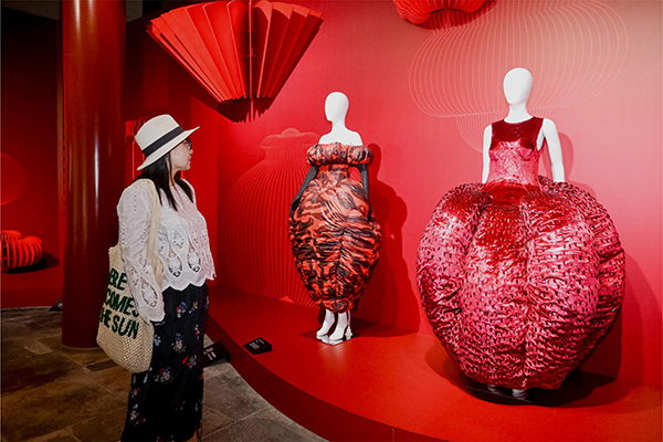 四季轮回,十二月景致流转,自然的时序变化与顺应时节的风雅生活,成为中式精雅生活的底色与韵脚。展览中服装设计师与艺术家的作品呼应着恭王府一年四季十二月的十二种美学符号,反映了艺术家对中华优秀传统文化的时尚解读,展现出中式审美的独特魅力。例如艺术家钱利淮的竹编作品《哇哇叫的太湖石》,源自东方文人传统,展现了非遗竹编技艺的传承与创新;艺术家吴笛笛的《静物-竹》,用几何形状强调竹的“物性”,让传统文人的审美对象有了鲜明的现代性;设计师陈鹏的作品《人生定格》,既扎根于东方文化基因,又以先锋的视角重构现代设计语言,形成风格鲜明的美学表达;设计师马凯的《春园雅集》,通过为山水、春兰和霜色等传统文化元素赋予色彩之美,体现了其对东方生活的洞悉。