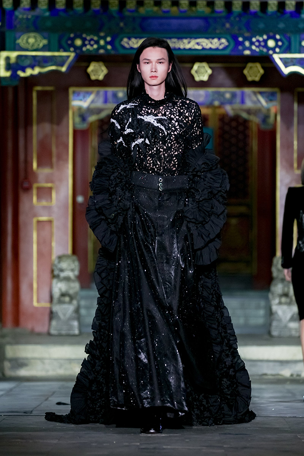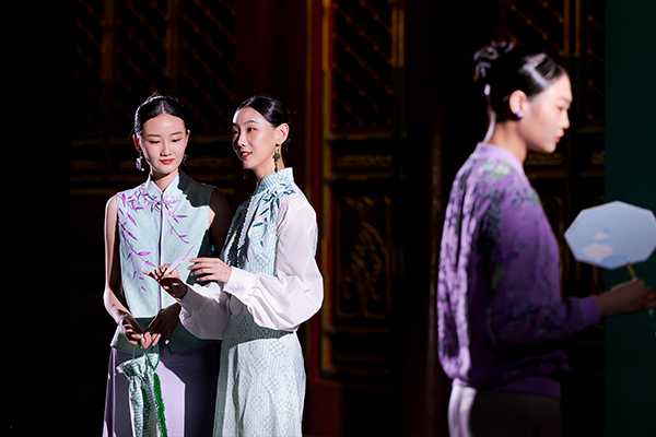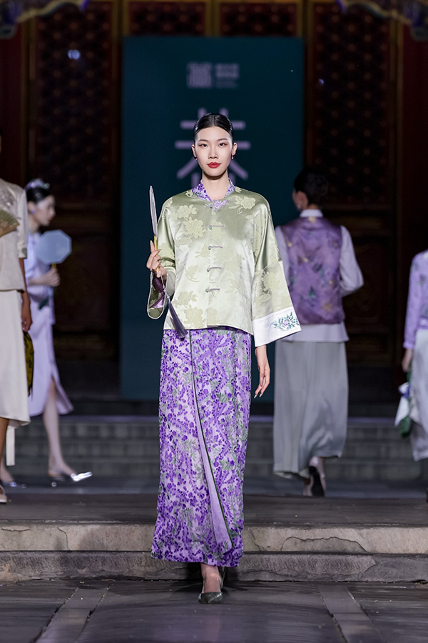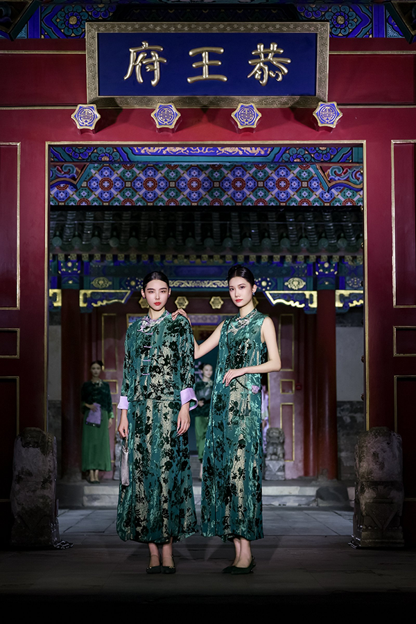“恭·时尚”品牌设计灵感源自中华优秀传统文化基因。恭王府紫藤垂蔓的流动线条、海棠花窗的几何纹样、竹子院中的竹林光影以及“天下第一福”等经典元素,被设计师创新融合古法缠花、盘金刺绣等非遗技艺,巧妙地转化为当代设计语言,实现从视觉观赏性到穿戴功能性的创新转化。