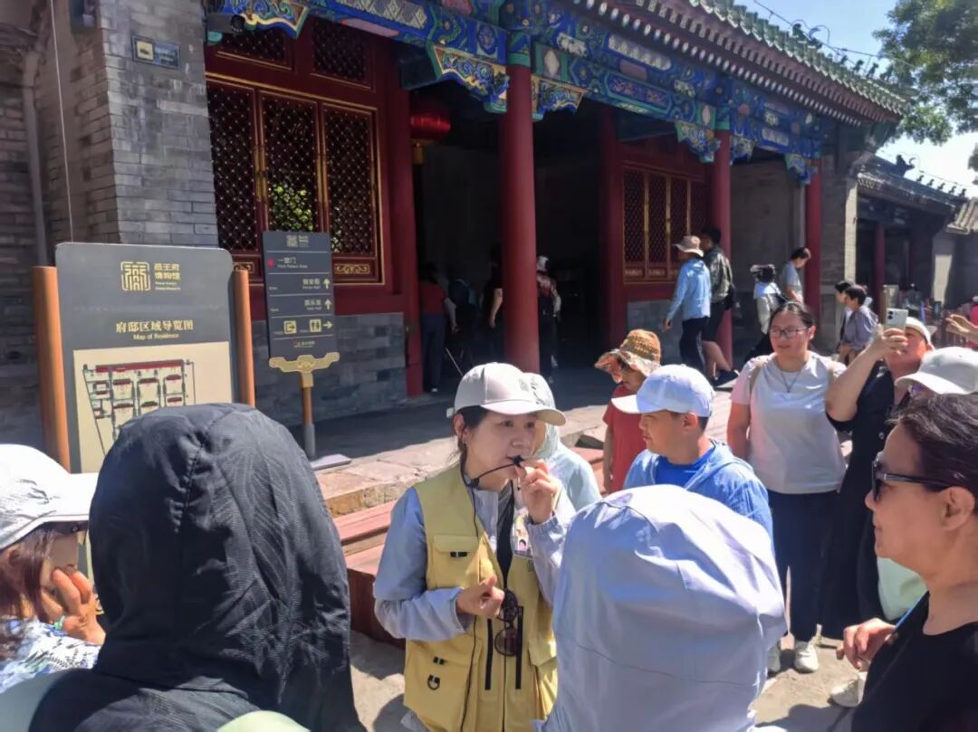 到“西洋门”后,这一家八口并没有随其他观众一起进入花园,而是和李老师继续畅聊,意犹未尽。孩子的家长说:李老师的讲解服务让一家人的参观从“看建筑”升级为“读历史、品文化”,更深刻地理解了一座王府的变迁,也就是一段历史的缩影。一家人热情邀请李力老师合影。于是,就有了这张照片。它不仅是李力老师暑期服务的珍贵记忆,更成为激励她终身学习做好志愿服务的不懈动力!