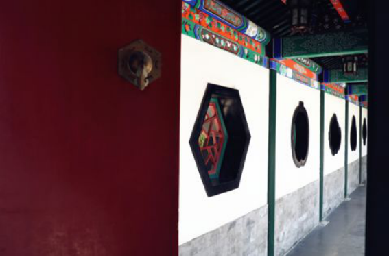 什锦窗,是漏窗的一种,造型精美、样式丰富,所以得名“什锦”。什锦窗用于四合院的游廊及宅院中,其外廓有圆、方、多边、银锭、扇面、器物、果蔬形。