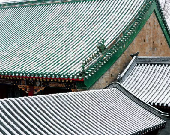 绿色琉璃瓦,仅次于黄色,多出现在城门或是亲王的府邸、宗教寺院等主要建筑的屋顶通常也会选用绿色琉璃瓦。