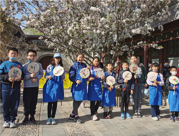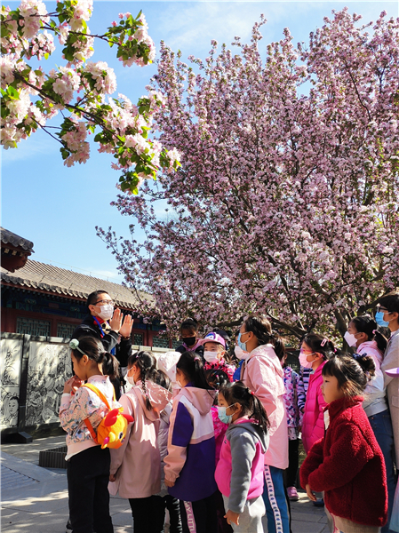 活动当天,在志愿者老师的带领下,同学和家长们逐一参观了锡晋斋等海棠盛开的院落,了解每座庭院的历史故事。