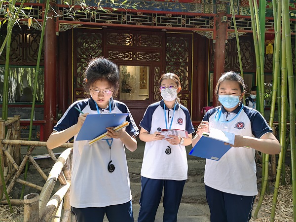 5月18日上午,北京市文汇中学初一年级师生来到恭王府博物馆,以园林植物配置为切入点,进行恭王府花园植物配置调查、测量、绘制恭王府花园植物配置图,并进入大戏楼开展课题汇报,师生共同展示在本次活动中学到的知识及科学与美学的碰撞。
