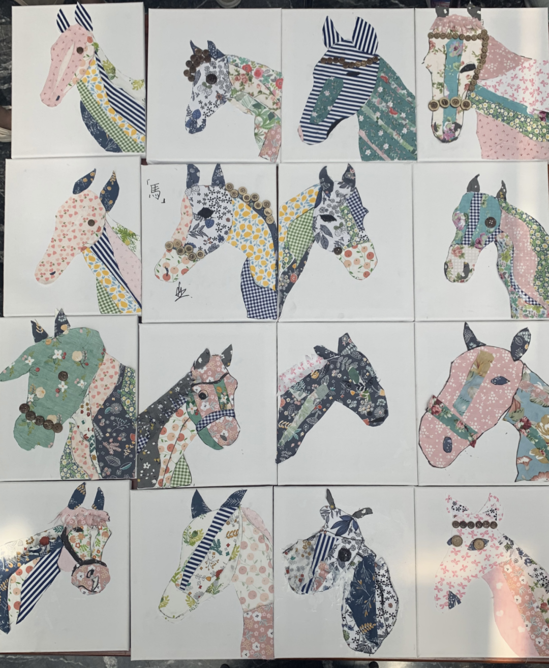 在趣味小课堂《综合材料:溥儒的马》上,学员们在学习溥儒画中马的基础上,使用花布、纽扣等综合材料,创作出独具创意的马头作品,体验绘画与手工结合的乐趣。