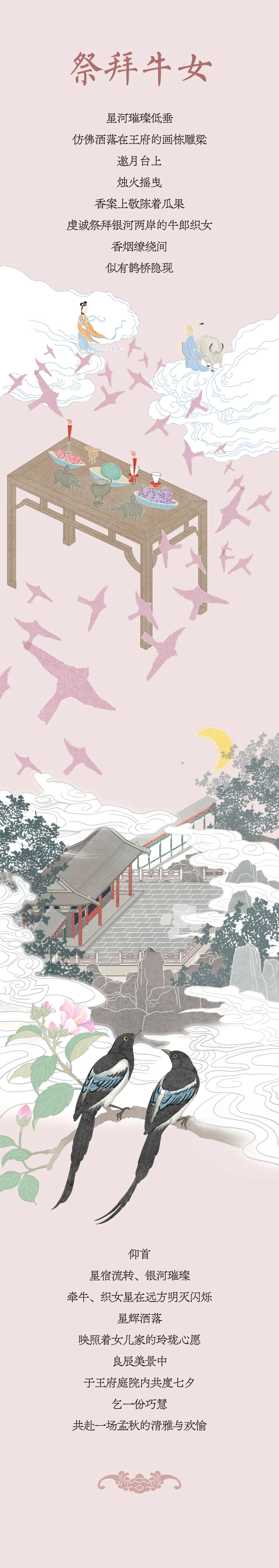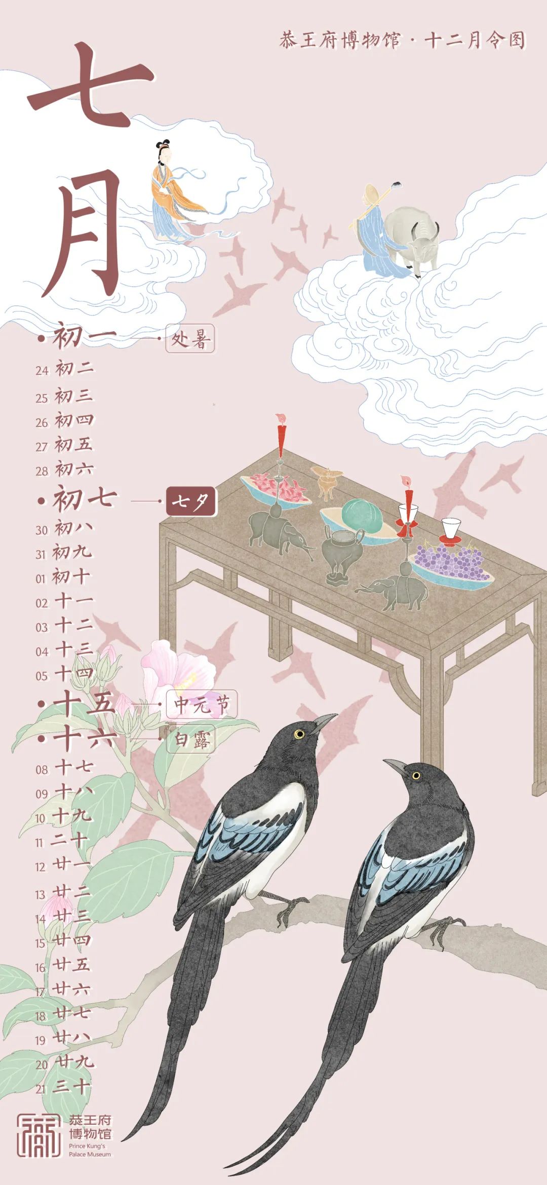 恭博十二月令·七月·穿针引线乞心巧 鹊影分辉照画堂