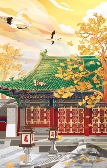 “秋风万里动,日暮黄云高。”在高爽的天气里,红柱绿瓦的银安殿静静守望,旋转而下的黄叶为这景致平添一份历史的厚重。秋天的云舒云卷似凤来栖,在她翩跹的羽裳与转瞬的回眸中,诉说的是恭王府人情悲欢。